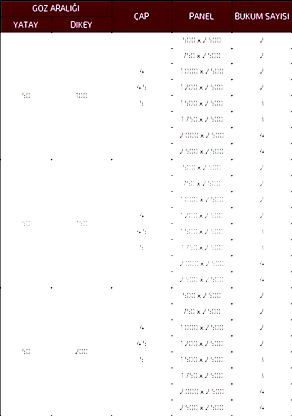 Note 1: The dimensions given in the table are STANDARD STOCK dimensions, and if requested, production can be made according to customer dimensions. Delivery times for custom-made panels depend on the production schedule on the order date.
